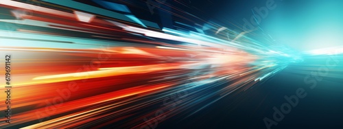 Abstract blue orange geometric speed futuristic technology texture with glowing 3d lines lights shapes pattern wall background banner illustration, backdrop for design web, wallpaper (Generative Ai)