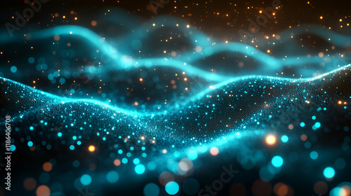Abstract Blue Particle Wave Background, Glowing Energy, Dynamic Digital Art