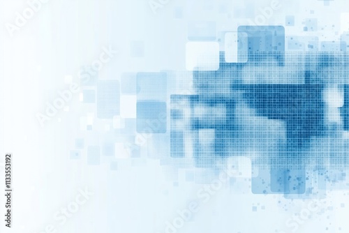 Abstract blue pixel grid background with overlapping squares. Modern tech design. Suitable for tech presentations. Digital illustration. Futuristic feel. Clean lines. Versatile visuals. Modern art.