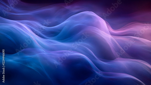 Abstract blue purple waves, flowing fabric texture, dark background, website banner