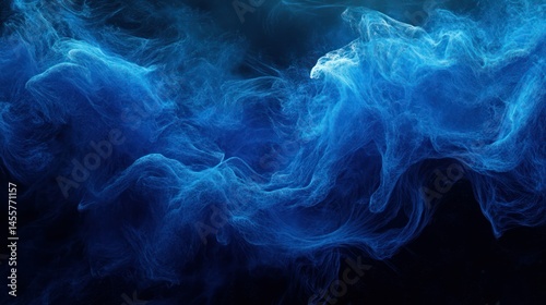 Abstract blue smoke swirling and billowing in a dark background with intricate patterns and a sense of movement and fluidity for artistic or creative design use