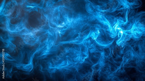 Abstract Blue Smoke, Swirling Clouds of Vapor on Dark Background, Ethereal and Dreamlike Image