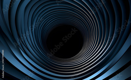Abstract blue spiral formation with a dark center representing infinity or depth
