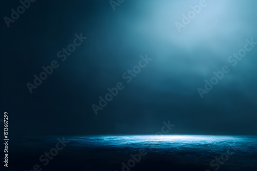 Abstract blue spotlight shining on a dark concrete floor in a studio setting, creating a modern and minimalist background for product display or graphic design