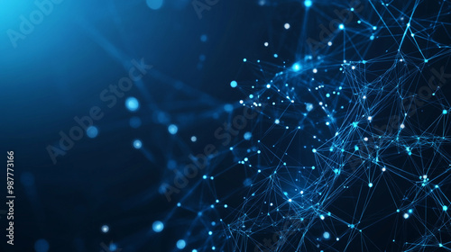 Abstract blue technology background with connection lines and dots, Blue Abstract Background With Line.