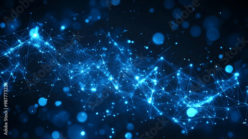 Abstract blue technology background with connection lines and dots, Blue Abstract Background With Line.