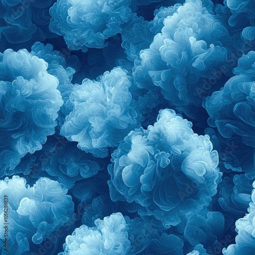 Abstract blue textures resembling soft, fluffy clouds create a calming, dreamy aesthetic.
