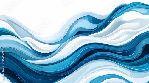 Abstract blue wave design, flowing water illustration, white background, website banner