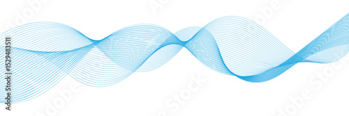 Abstract blue wave lines on transparent background. Curved wavy line, smooth stripe. Thin line wavy abstract background. Digital frequency track equalizer. Vector illustration.
