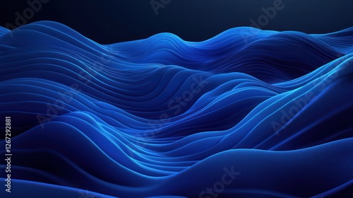 Abstract blue wave pattern, digital rendering, dark background, futuristic design