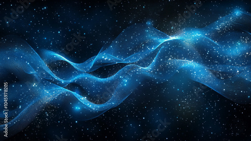 Abstract Blue Wave with Sparkling Dust on Black Background
