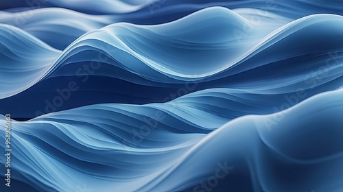 Abstract blue waves flowing across a gradient backdrop, with a blend of light and dark tones for a harmonious visual effect