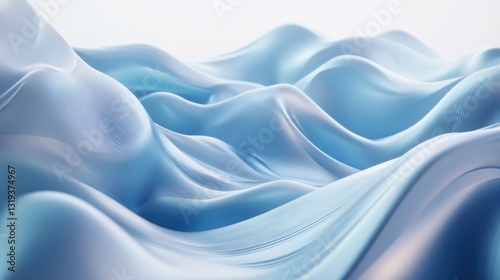 Abstract Blue Waves of Lightweight Fabric Flowing Smoothly