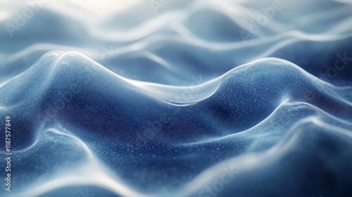 Abstract Blue Waves of Sparkling Particles Flowing Across a Digital Landscape with Depth and Texture