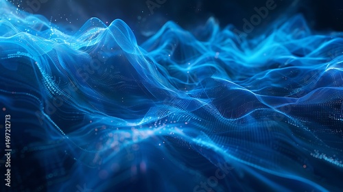 Abstract blue waves with glowing particles creating a futuristic and dynamic background with a flowing and energetic feel