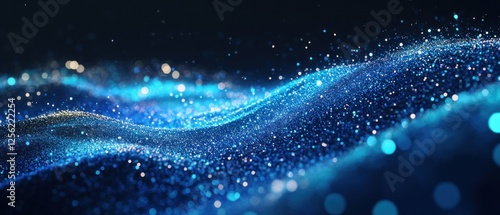 Abstract blue waves with shimmering particles creating a tranquil atmosphere in a digital space