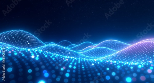 Abstract Blue Wavy Particle Background with Stars