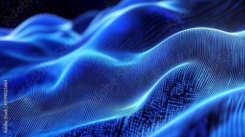 Abstract Blue Wavy Particle Surface Digital Background for Science and Technology