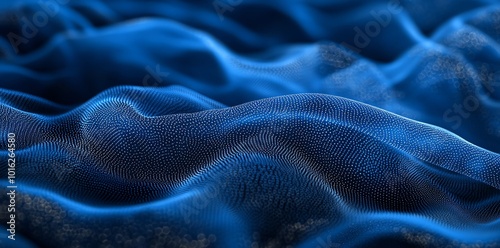 Abstract blue wavy surface with a subtle grid pattern, a modern and digital background.
