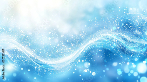 Abstract blue winter background with sparkling light and glowing wave design ice snow cold cool calm