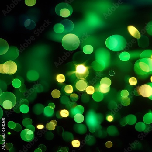 Abstract blur bokeh banner background. Gold bokeh on defocused emerald black background