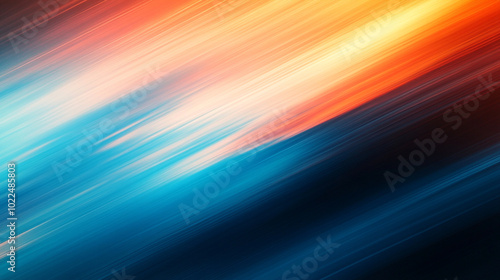 abstract blur of orange and blue gradients creates a dynamic background, symbolizing creativity and innovation. The vibrant colors evoke emotions of warmth and tranquility, perfect for artistic use