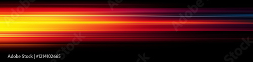 Abstract Blurred Background with Colorful Light Stripes on Dark Orange and Black: Glowing Horizontal Gradient Lines in Motion