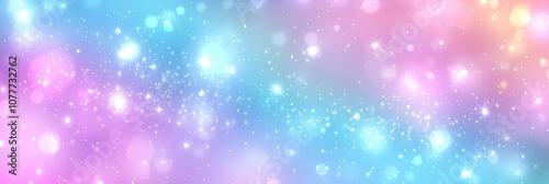 Abstract blurred bokeh light background , blue unicorn background. Pastel watercolor sky with glitter stars and bokeh. Fantasy space galaxy with holographic texture. banner poster template