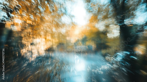 Abstract Blurred Forest Landscape with Light Streaming Through the Canopy