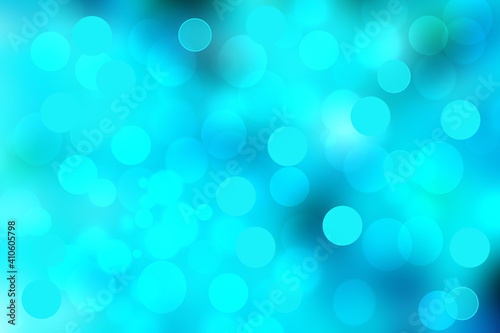Abstract blurred fresh vivid spring summer light delicate pastel blue turquoise bokeh background texture with bright circular soft color lights. Card concept. Beautiful backdrop illustration.