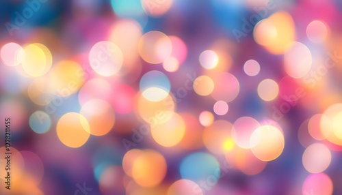 Abstract blurred image shows colorful circles of light and bokeh