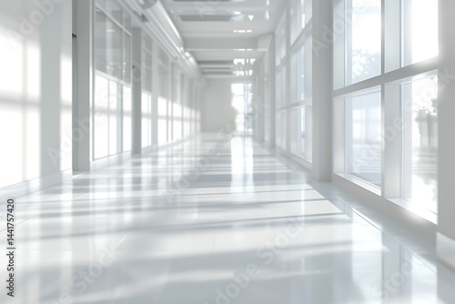 Abstract blurred modern workspace background, white indoor interior office or hospital with window and the light with copy space. Blurry backgrounds for advertising and business presentation.