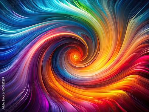 Abstract blurred motion of vibrant colors on a dark swirling background, creating a mesmerizing whirlpool effect with dynamic curves and fluid shapes.