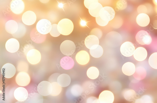 Abstract Bokeh Light Background with Soft Golden and Pink Hues Sparkling in a Dreamy Atmosphere