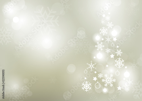 Abstract Bokeh Winter Background with a Shaped Christmas Tree Formed from Snowflakes - Colored Illustration, Vector