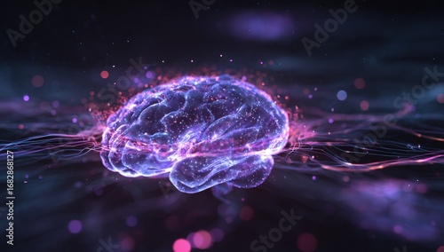 Abstract brain, glowing particles