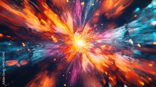 Abstract Bright Burst of Color with Light Streaks and Glittering Particles