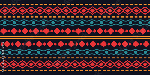 Abstract bright colorful pattern banner design template with tribal aztec style ornament. Ethnic background collection. Ethnic border style seamless pattern. Tribal mexico or african print design art.