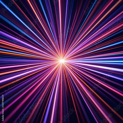 Abstract Burst: A vibrant display of colorful light rays emanates from a central point, creating a sense of energy, motion, and visual impact. Ai generated image