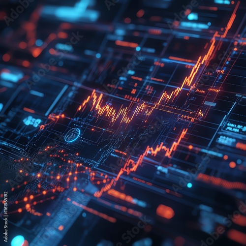 Abstract business and technology concept, glowing interactive graphs and charts, sleek professional interface, futuristic tones, ultraHD wallpaper