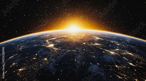abstract business connection of line from nail node to node on world map background Innovation network points Earth's surface