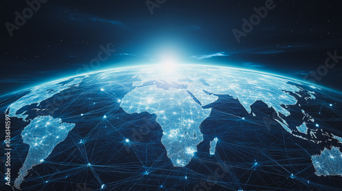 abstract business connection of line from nail node to node on world map background Innovation network points Earth's surface