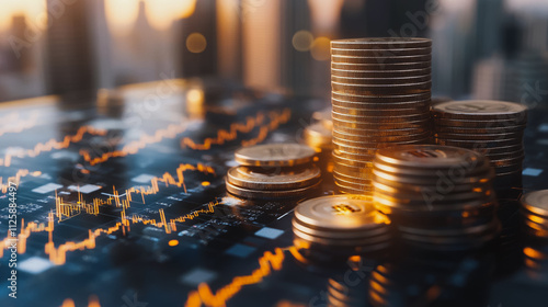 Abstract business Financial charts show a significant increase in profits in the stock market.This is driven by higher interest rates and continued growth. In the innovation world network of financial