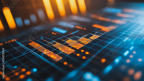 Abstract business Financial charts show a significant increase in profits in the stock market.This is driven by higher interest rates and continued growth. In the innovation world network of financial