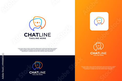 Abstract chat with line art combination logo design