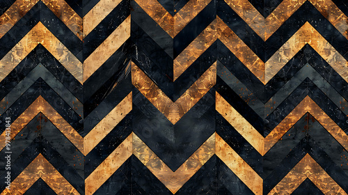 Abstract chevron pattern in black and gold.