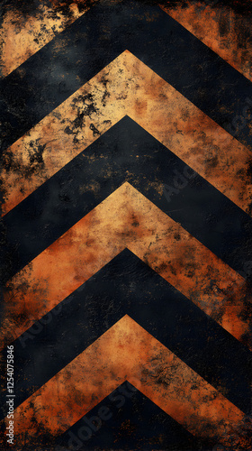 Abstract Chevron Textured Background: Bold Industrial Grunge Pattern in Vibrant Orange and Black Design Elements