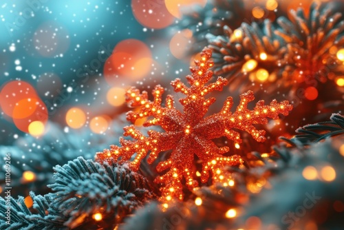 Abstract Christmas Background with Shimmering Snowflakes and Bokeh Light