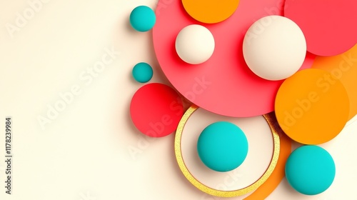 Abstract Circle Composition: A vibrant and playful composition of overlapping circles in shades of pink, orange, blue, and yellow, creating a dynamic visual pattern.