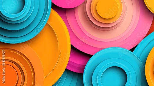 abstract circles with a gradient color design, creating depth and visual interest. The circles are layered on top of each other in various sizes, creating a dynamic and modern composition.